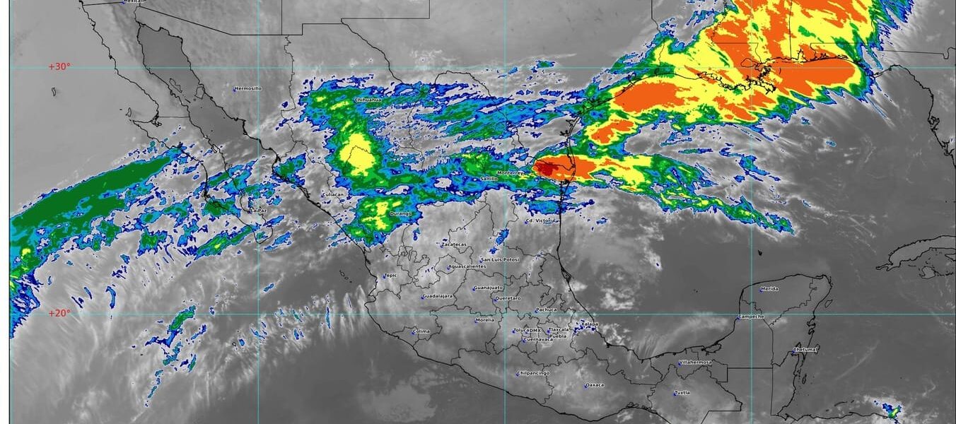 Por otra parte, canales de baja presión sobre el centro, oriente y sureste de México, en combinación con inestabilidad atmosférica y con el ingreso de humedad del océano Pacífico, golfo de México y mar Caribe, ocasionarán lluvias puntuales muy fuertes en Puebla y Veracruz; y puntuales fuertes en Querétaro, Hidalgo, Tlaxcala, Oaxaca y Chiapas, todas con descargas eléctricas y posible caída de granizo; además de chubascos en el Estado de México y lluvias aisladas en zonas de Michoacán, Guanajuato, Morelos, Ciudad de México, Tabasco y Quintana Roo.