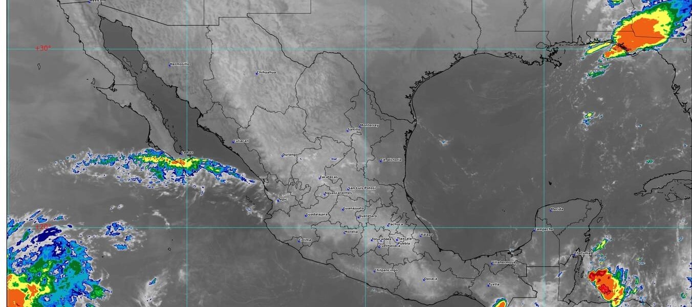 🔸Canales de baja presión sobre el interior del país y la península de Yucatán, originarán lluvias y chubascos dispersos.