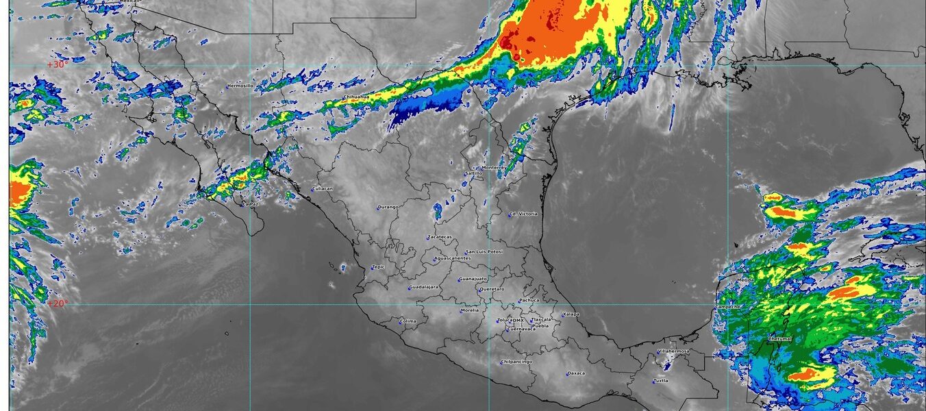 Simultáneamente, canales de baja presión en el interior del país y el ingreso de humedad del océano Pacífico y golfo de México, propiciarán lluvias y chubascos en zonas del norte, centro y occidente del territorio nacional.