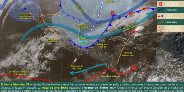 Frente frío 32 azota el sureste: lluvias intensas y “Norte” violento este 31 de enero